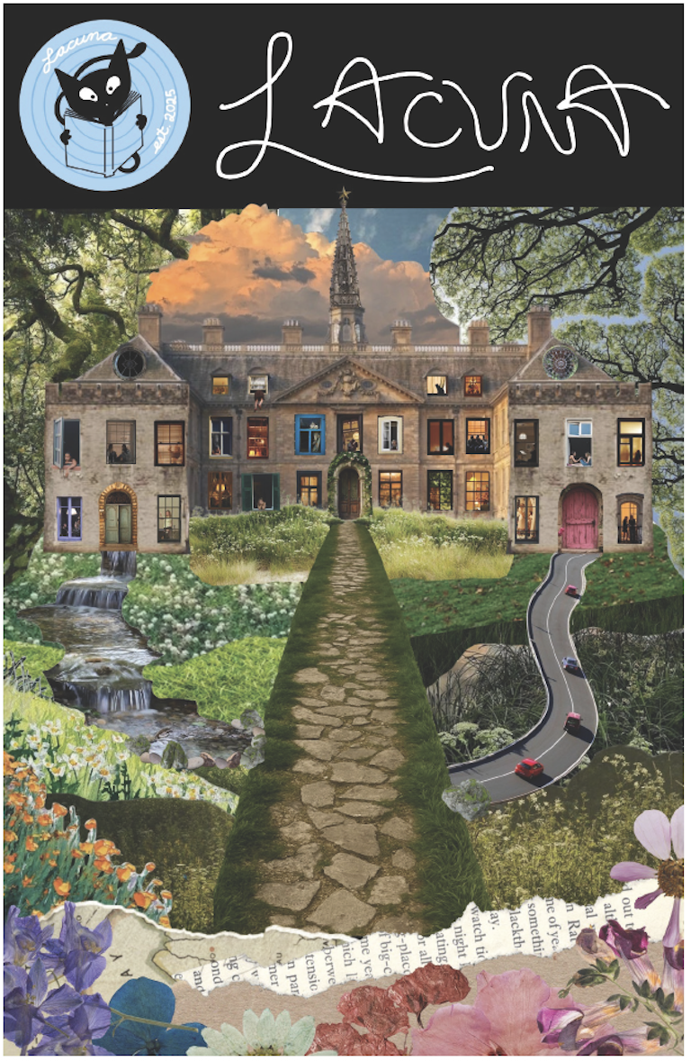 Founded in early 2025 at Kenyon College, Lacuna is a national literary publication dedicated to publishing innovative, boundary-pushing and conversation-defining creative and academic works by young writers. In an industry dominated by those with terminal degrees, Lacuna provides future professionals with a platform into the current literary conversation amongst their peers to create genuine dialogue and collaboration, as well as an opportunity to showcase their work to a national audience. Lacuna also offers pre-professional programs and workshops in partnership with literary faculty, organizations and local resources to support further growth and development, as well as providing hands-on publishing experience at all levels